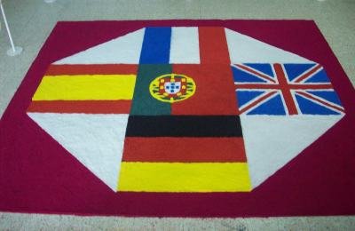 Entre 7 a 11 de maio, a EB2,3/S de Caminha comemorou a Semana da Europa dinamizada pelo Departamento de Línguas, em articulação com o Departamento de Ciências Sociais e Humanas, que pretende promover uma escola multicultural e práticas de relacionamento interpessoal favoráveis ao exercício de uma cidadania europeia. As atividades decorreram fundamentalmente no polivalente da escola onde estiveram expostos diversos trabalhos dos alunos realizados essencialmente no âmbito da disciplina de Geografia. Este ano, a decoração contou com a colaboração do professor Fernando Borlido e da assistente operacional Júlia Rolo que orientaram a elaboração de um tapete colorido, onde se exibiam as bandeiras dos países representados nesta celebração (Portugal, Espanha, França, Alemanha e Reino Unido). Ao longo da semana, não faltaram os vídeos e a música respetiva a cada país, que em muito contribuíram para o ambiente de festa. A semana iniciou-se com o dia da Língua Alemã repleto de ação. O Hino da Europa foi interpretado com muita maestria pela Ana Raquel Alves, acompanhada pelas vozes afinadas do 6ºA e pelos acordes da guitarra elétrica e da viola baixo, respetivamente do professor Agostinho Oliveira e dos alunos Marcelo Malheiro e Maurício Quintela. O Clube de Alemão também desafiou as turmas do 6º ano a porem à prova os seus conhecimentos sobre a cultura -Landeskunde - dos países de língua oficial alemã, através da participação num concurso verdadeiramente empolgante. A finalizar o dia, as pequenas Superstars arrebataram todas as atenções com a sua coreografia energizante. O dia do Inglês foi enriquecido com o fantástico desfile criativo de chapéus, inspirados na extravagante chapelaria que se pode apreciar nas famosas corridas de Ascot, coordenado pela docente Rosa Duarte (EVT) e que consistiu na criação de chapéus com materiais reciclados (em articulação com o projeto eco-escolas) e no seu desfile, realizado pelas nossas alunas que assumiram brilhantemente o papel de modelos. Os alunos puderam ainda assistir a filmes e cartoons e participaram entusiasticamente no quiz sobre a cultura dos países de Língua Inglesa. Na quarta-feira, decorreu o dia do Francês ao som de músicas e projeção de imagens relativas à cultura francesa. Foi ainda organizado um quiz cultural com a participação ativa dos alunos, que demonstraram os seus conhecimentos nos temas abordados. O momento alto do dia foi a degustação dos crepes a que as professoras de francês já habituaram toda a comunidade escolar e que, mais uma vez, não deixou ninguém indiferente. Durante o dia do Português decorreu, na biblioteca escolar, o concurso de poesia, subordinado ao tema "União". Também na biblioteca, à hora de almoço, foi possível usufruir de Delícias Literárias e de Bombons Literários - um momento de leitura dramatizada, realizado pelos alunos dos oitavo, décimo e décimo primeiro anos e que terminou com a distribuição de bombons literários a todos os presentes. No polivalente assistiu-se a um belo momento musical protagonizado por dois alunos do 12ºA - Ana Alves e Diogo Morais e à exposição Poesia Flutuante (trabalho desenvolvido pela docente Catarina Santos, na disciplina de Educação Visual, com os alunos dos 7º anos de escolaridade). O dia do Espanhol foi repleto de jogos populares do país vizinho, claramente animados pela interpretação de canções espanholas e pela demonstração de dança latina por parte dos discentes. Houve ainda uma degustação de tapas, gomas e da deliciosa tarte de São Tiago. Como já é habitual, cada língua apresentou a "Pergunta do Dia", concurso que coloca uma questão de cultura geral relativa também aos conhecimentos que os alunos possuem sobre. A Semana da Europa foi ainda solenizada com o almoço típico do país celebrado, proporcionando-se a toda a comunidade escolar a oportunidade de contactarem com diferentes sabores. EB 2,3/S de Caminha