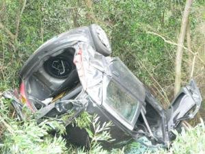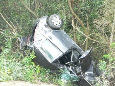 Após embater nos rails laterais, o carro capotou, saiu da estrada e ficou retido nas austrálias que ladeiam a via rápida, o que evitou que se precipitasse pela ribanceira.