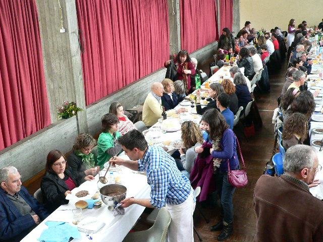 Famílias inteiras, crianças, jovens e idosos e alguns convidados não quiseram faltar a esta a tradição comunitária iniciada apenas por homens no antigo "clube", mas que os ventos de Abril alargaram ao sexo feminino.