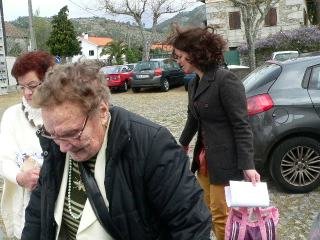 Maria Rosa Guerreiro, a caminho dos 93 anos, não falha ao convívio anual da comunidade da sua terra. Fez a quarta classe e foi logo trabalhar para a lavoura, disse-nos. Foi essa a sua vida. Nos tempos difíceis da "guerra da Espanha em que era fome de tremer, em que nem pão havia".