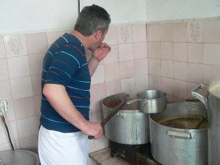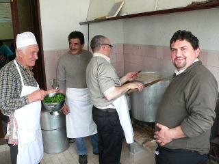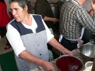 Do interior da "cozinha" da antiga estufa, saiam fumos e aromas prenunciadores de algo de saboroso a extrair dos panelões onde ferviam 180 kg de febras, 100 de carne de porco, 26 de arroz, mergulhados em 15 litros de azeite, 10 de óleo e 40 litros de vinho branco e tinto, a par dos habituais condimentos à base de sal, cominhos, bacon, coentros, salsa, tudo revolvido por compridas colheres que os cozinheiros (habituais) apuravam minuciosamente, para que tivessem direito a uma (tradicional) salva de palmas por parte dos comensais que aguardavam ansiosamente que os servissem, sentados ao longo das mesas distribuídas pelo salão.
