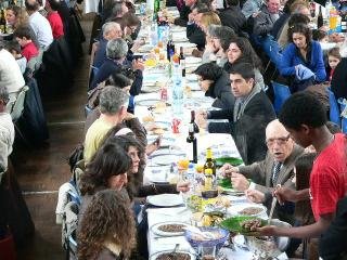 Convivas munidos de lancheiras e sacos, contendo talheres, bebidas e sobremesa (o resto é por conta da casa) iam chegando às instalações do CIRV, à medida que se aproximava a hora do repasto.