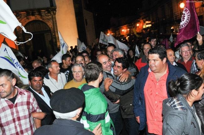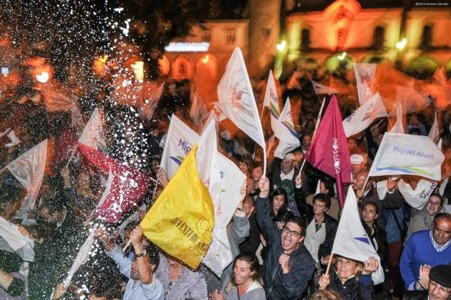 Foi apoteótica a recepção de Miguel Alves junto à sede da sua candidatura à presidência da Câmara Municipal de Caminha, na Rua do Cais, na sede do concelho, após serem conhecidos os resultados eleitorais que lhe deram a vitória com 261 votos de avanço sobre o candidato do PSD.