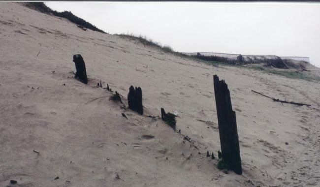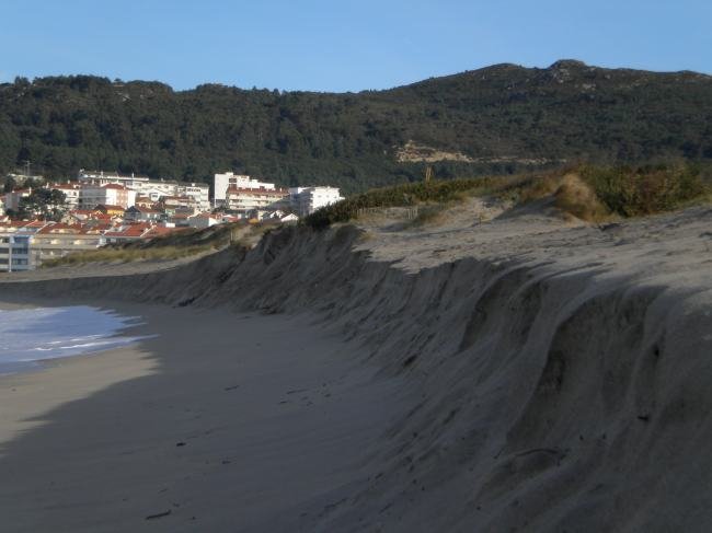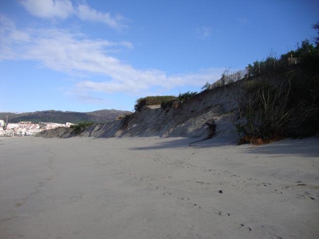 Os efeitos dinâmicos na praia, associados aos outros factores da variação do nível do mar, deram origem à erosão daquela, que se foi acentuando, rebaixando a área da praia, começando a colocar em perigo todo o cordão dunar que devido à força marítima começou a demolir a duna.