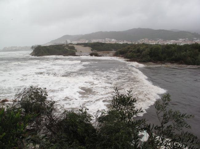 Durante perto de trinta anos a cota da crista da duna foi reduzindo, até que em 1990, após uma tempestade, o mar saltou a duna, e, arrastou uma quantidade significativa de areia, para o interior do leito do rio, no entanto não chegou a abrir o acesso para o mar, conforme é visível na foto aque se segue.