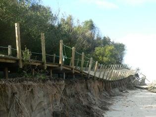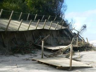 O passadiço de madeira que parte desde o acesso a este estádio até ao mar, já se encontrava parcialmente derrubado devido ao avanço do mar, registando-se ainda a destruição de estruturas de apoio (postes, canos e cabos) a este equipamento desportivo situados na sua parte exterior, por efeito das ondas e do seu embate com a água que o caudaloso rio Âncora transporta para jusante.