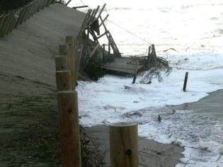 Responsáveis da Agência Portuguesa do Ambiente (ex-Ministério do Ambiente) visitaram na tarde de hoje a situação crítica na Duna dos Caldeirões, após a ruptura do cordão dunar por acção do mar.