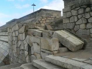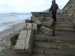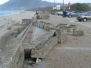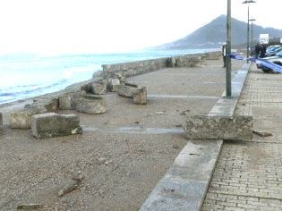 Já há uma semana atrás, as ondas tinham quebrado a extremidade sul do parapeito do paredão, entretanto já reparado.