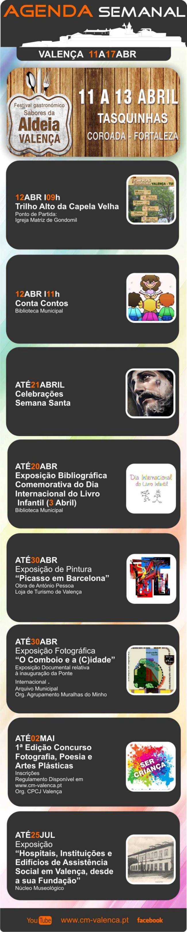 Valença promove a Feira Gastronómica - Tasquinhas - "Sabores da Aldeia", no fim de semana de 11 a 13 de abril, na Coroada - Fortaleza. Um cartaz que convida a visitar e saborear Valença um destino gastronómico privilegiado.