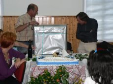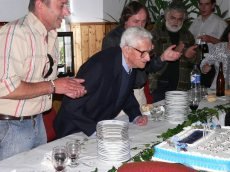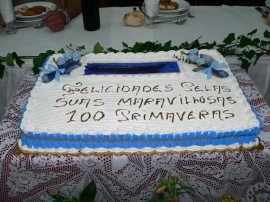 Teve ainda direito a um bolo de aniversário, cantaram-lhe os parabéns e pôde voltar a visionar partes de um DVD gravado há uns anos atrás pela Corema e Junta de Freguesia, em que o próprio é um dos entrevistados, pela sua condição de construtor de barcos carochos.