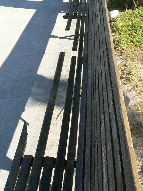 O que já foi considerado o banco do Guiness - pela sua extensão -, construído ao longo da Avenida Entre-Pontes, revela deterioração em alguns pontos, com ripas de madeira partidas e falta de pintura (manutenção) em todo o seu comprimento.