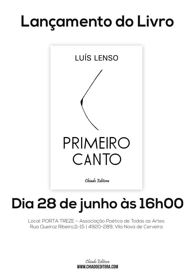 O conhecido médico Nelson Rodrigues, nascido no Canadá e que desde os 3 anos dividiu a sua vida pelos Arcos de Valdevez, Ponte de Lima e Viana do Castelo, com licenciamento no Porto, vai lançar um livro de poemas com o pseudónimo de Luís Lenso. A obra do ' Primeiro Canto ' é iniciativa da Chiado Editora e será apresentada pelo conceituado escritor Luandino Vieira no próximo sábado, pelas 16,00 horas, na Porta Treze ( Associação Poética de Todas as Artes ), em Vila Nova de Cerveira.