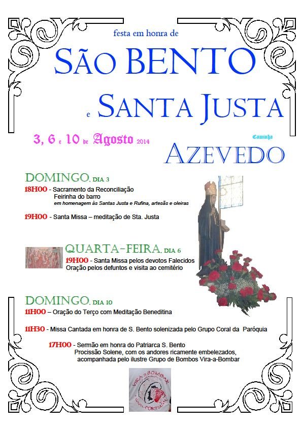 A Paróquia de S.Miguel de Azevedo festeja-o no mês de Agosto. Sendo uma comunidade muito pequena, aproveita a altura em que estão cá os filhos da terra, para fazer festa com os emigrantes. Junto enviamos o programa, que também festeja Santa Justa, venerada na Igreja de Azevedo.