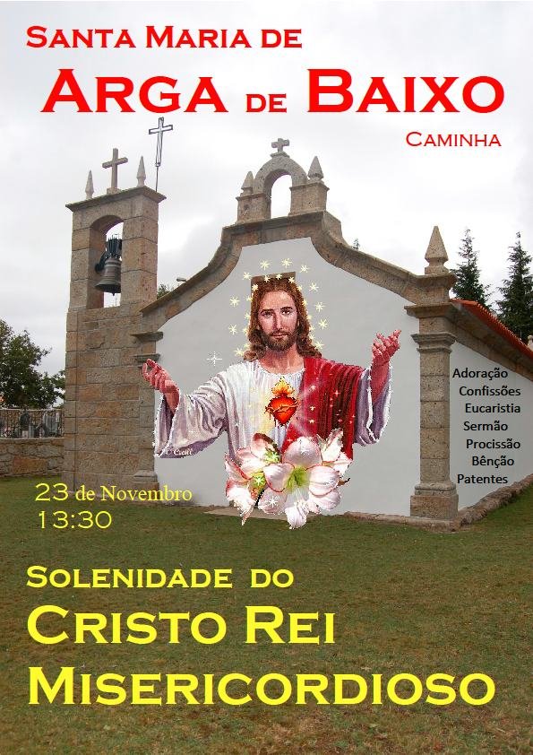 A nossa Diocese empenha-se neste ano pastoral de um modo peculiar na formação da fé na família. Neste lugar vocacional podemos experimentar o reino do Senhor da Saúde, o "Rei" que preside, da cruz, a um "Reino" de serviço, de amor, de entrega, de dom da vida. Se as nossas famílias aprenderem deste Mestre que ensina o que vive, teremos lares onde o Amor tem lugar no quotidiano. É esta a tarefa do Centro do Apostolado da Oração da Paróquia de Santa Maria de Arga: pedir com Jesus ao Pai que o Seu Reino venha a nós. Aprendamos com a Nossa Senhora, Mãe do Rei, a Serva do Senhor, a servir e a acolher Jesus Cristo, o "Rei dos Judeus".