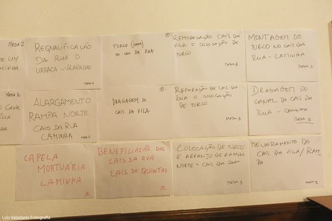 Ontem foram votadas em Plenário segundo a ordem de pontuação, as seguintes propostas: Reparação de Cais da Rua e colocação de Turco (31); Dragagem do canal do Cais da Rua (15); Melhoramento do Cais da Vila / rampa (13); Meia casa como espaço do pescador - Caminha (13); Capela mortuária - Caminha (11); Requalificação da rua D. Urraca - Vilarelho (6); Beneficiação do cais da Rua e do cais do Quintas (5); Eletrificação e água na Foz do Minho "Quintas" (2); Plantação de folhosas na Serra d'Arga (1) e Montagem do turco no Cais da Rua - Caminha (1).