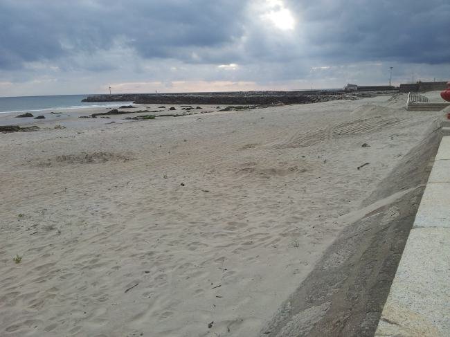 Além disso, da maneira como a praia está neste momento, com a areia, em vários pontos, quase ao nível da avenida marginal, corre-se o risco de num dia de temporal, com mar de sudoeste, este galgue o paredão invada a via pública e o casario, provocando danos de vulto. Calculo que o nível da praia neste local tenha subido em média entre 1,5 m e 2 metros.