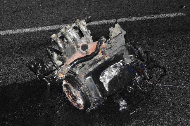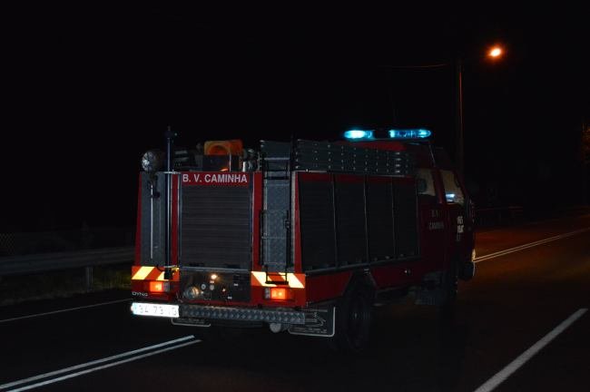 Os Bombeiros Voluntários de Caminha procederem à limpeza do piso, removendo as peças espalhadas e retirando o óleo derramado.