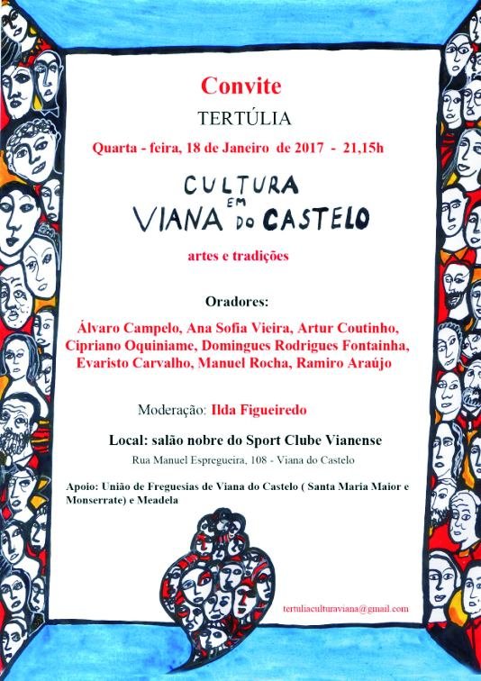 No próximo dia 18 de Janeiro, as Tertúlias sobre Cultura em Viana do Castelo voltam ao salão nobre do Vianense, a partir das 21,15.