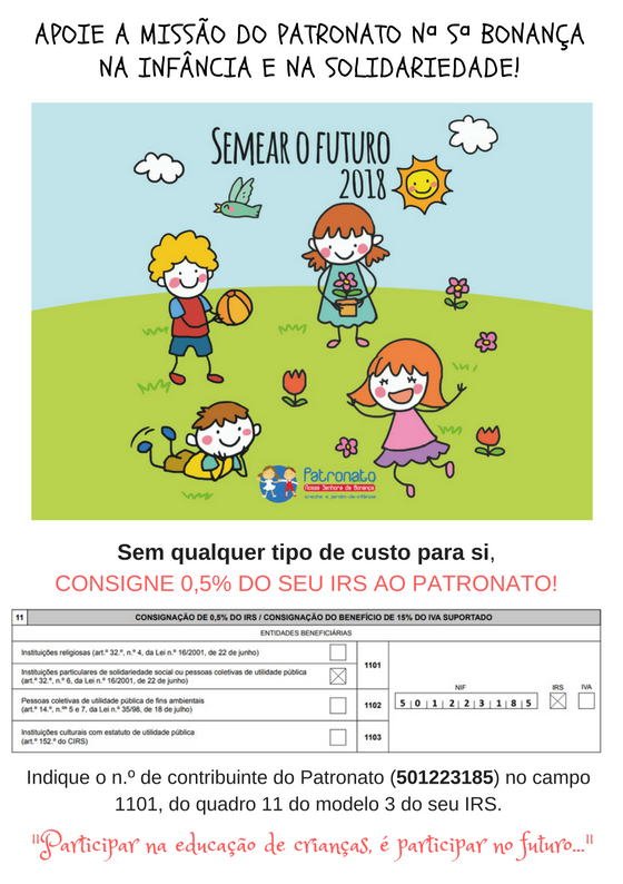 "O Patronato Nossa Senhora da Bonança pede o apoio e a colaboração de todos: