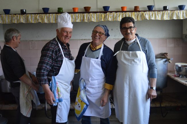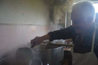 António Fiúza já não consegue contar os anos ("mais de trinta e assim continuarei enquanto tiver força e vida e as pernas ajudarem", afiançou ao C@2000), em que se encontra a chefiar ininterruptamente a equipa de três cozinheiros ("mais o meu filho que veio dar uma mão, a ver se lhe meto o bicho no corpo, tal como a um neto que não pôde estar presente, mas está a gostar", garantiu) que confeccionam o saboroso repasto, apoiado por ajudantas e pelo grupo de jovens que servem à mesa.