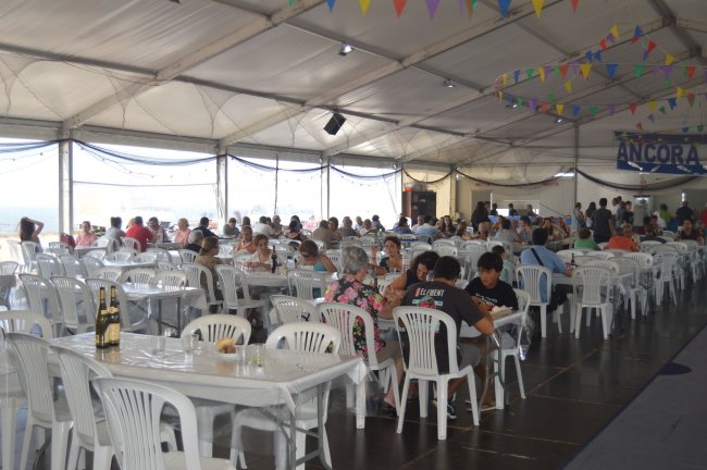 No interior de uma tenda gigante instalada nas Camboas, os apreciadores dos produtos mar têm até amanhã a oportunidade de apreciar alguns dos pratos mais apetecíveis, como a sardinha assada, arroz de sardinha e a petinga doce, uma adaptação deste petisco à doçaria local.