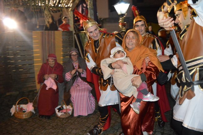 Rebanhos de ovelhas e cabras, artesãos (oleiros, ferreiros, carpinteiros, padeiras, taberneiros, cozinheiras), legionários romanos, reis magos, anjos e arcanjos (narrando os diversos capítulos da encenação histórica do cimo de uma varanda), seguidos de bem perto pela população que não quis deixar de apreciar um ano mais esta representação envolvendo largas dezenas de moradores desta freguesia.