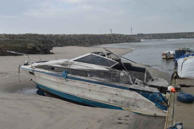 Está atracada há mais de dois anos e mar encarrega-se de a destruir