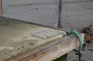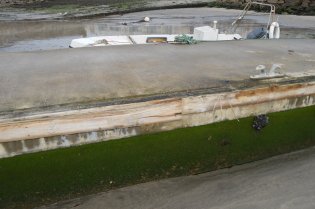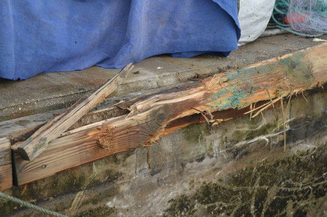 Um cabeço já foi arrancado do pontão que se encontra a ser "roído" pelo embate da lancha (tendo já partido tábuas que funcionam como estruturas de defesa do atraco) e, esta semana, a popa da embarcação (parcialmente destruída por bater sistematicamente na estrutura de amarração) enfiou-se por debaixo do pontão.