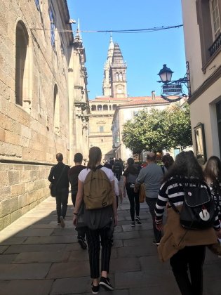 Em Santiago de Compostela, os alunos tiveram a oportunidade de visitar a Catedral com a orientação do professor José Alfredo, que explicou a sua história, conduziu os alunos ao túmulo do Apóstolo Santiago e descreveu a cerimónia do botafumero.