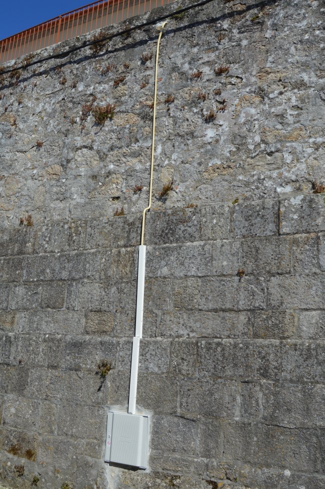 Poderiam ter utilizado um tubo e uma caixa para o gás natural com uma cor condizente com o muro de sustentação.