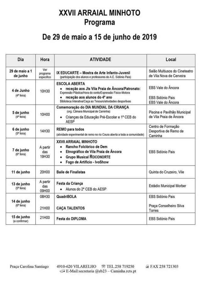 Desta forma se regista o envolvimento do agrupamento, também ao nível da oferta educativa e formativa profissional, testemunhando a aposta diversificada que carateriza a ação da escola pública no concelho de Caminha.
