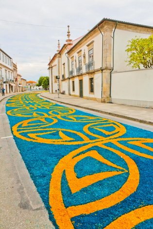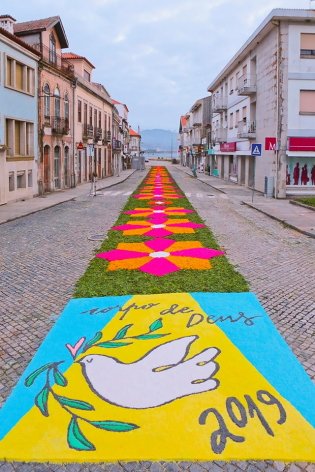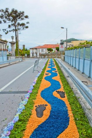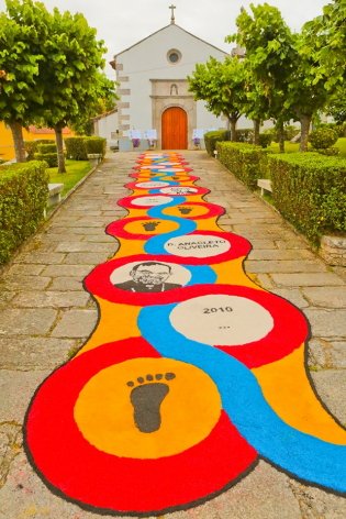 Distribuídos pelas diferentes artérias, cada grupo de artesãos (assim se podem classificar estes artistas da Festa religiosa), foi encaixando as centenas de quilos de plantas nos puzzles gizados com devoção, muitas vezes recorrendo mesmo a moldes preparados nas oficinas municipais.