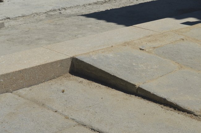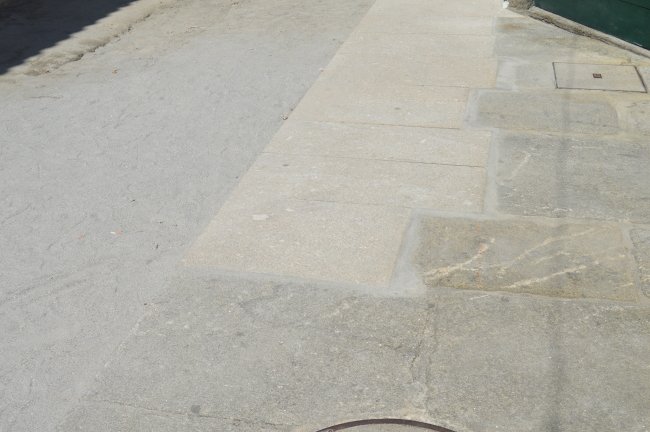 Rampa em lage antiga com ligação a pedras do século XXI e com perigosidade lateral