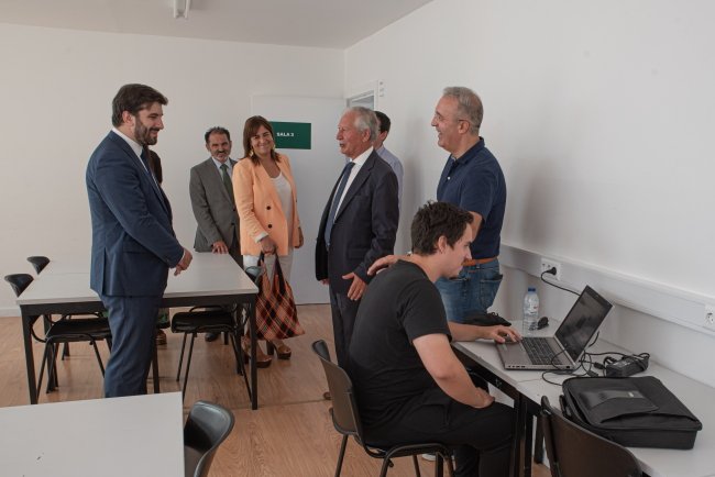 Seguiu-se depois a passagem pelos diversos espaços de formação, tendo tido a oportunidade de apreciar e elogiar a escola pela qualidade dos equipamentos informáticos ao dispor dos 250 alunos que frequentam cursos de diversas áreas de formação, enaltecendo o esforço deste investimento detendo-se, particularmente, nas oficinas pedagógicas onde decorre a formação dos cursos de Eletrónica e Artes Gráficas. Nas oficinas houve a oportunidade de contactar com alguns alunos que foram incentivados, através de um discurso motivador da iniciativa do Senhor Ministro, a concluírem os cursos, salientando a importância da aprendizagem ao longo da vida e do prosseguimento de estudos no ensino superior.
