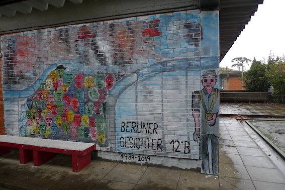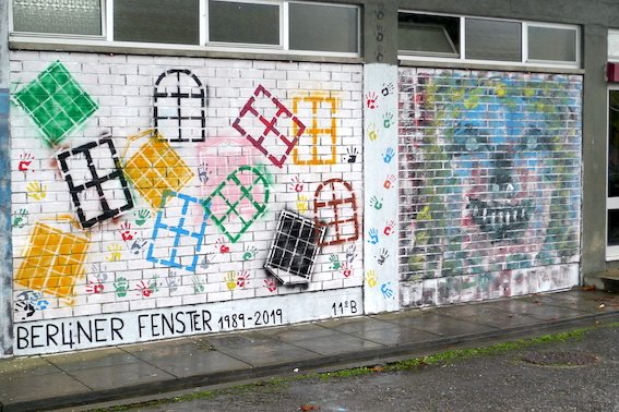 As duas turmas usaram técnicas diversas - stencil recortado e spray o 11º B; pintura mural o 12º B -, e grafaram motivos diferentes - os rostos (12º B) e as janelas dos berlinenses (11º B) -, mas o trabalho foi conjunto e o propósito o mesmo, celebrar o fim da divisão política e a reconquista da liberdade de expressão pelo povo alemão no seu conjunto há trinta anos.