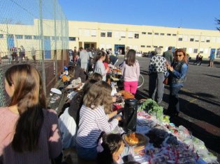 As turmas do 5º ao 9º ano apresentaram as suas mesas repletas de artigos da terra ou confeccionados em suas casas que foram vendendo durante toda a manhã aos visitantes, professores, pais, avós, auxiliares educativos....