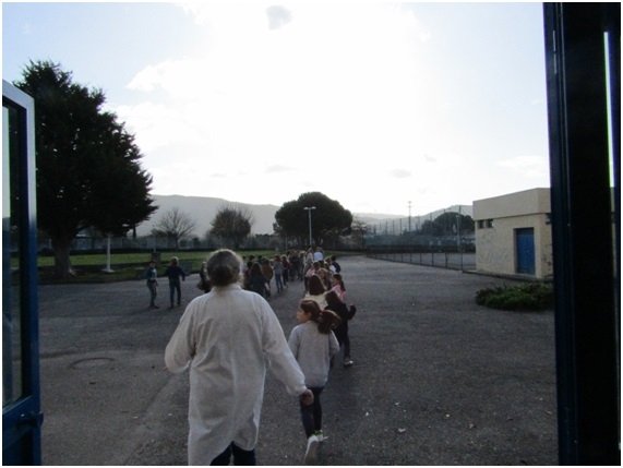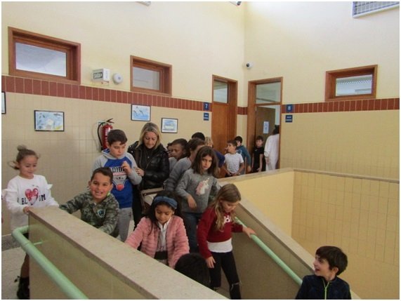 Findo o exercício, mas antes ainda de se retomar o trabalho regular das atividades letivas, com os alunos do 1º Ciclo do Ensino Básico foi realizado um exercício complementar de simulacro, envolvendo a evacuação da sala de aula.