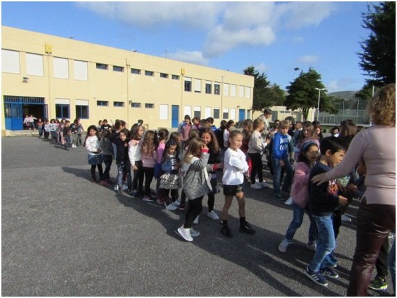 Com um total de cinco turmas envolvidas nesta segunda atividade, foi possível reunir todos os alunos, no tempo definido de dois minutos, no ponto de encontro exterior, conseguindo-se concretizar de forma positiva a tarefa.