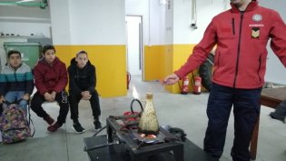 Mas esta "aula" incluiu ainda uma atividade prática, dotando os alunos de saberes na identificação de combustíveis e comburente, bem como de como agir no domínio da identificação da eclosão e declínio de chamas.