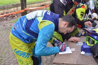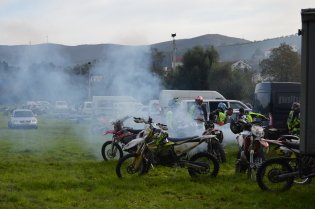 Ainda se estendia por uma dezena de metros a fila de inscrições junto ao grupo que controlava os participantes e lhes oferecia um vídeo da prova do ano passado e uma t-shirt alusiva ao evento deste mês de Novembro, e já os motoqueiros faziam rugir as suas máquinas (motos e moto-quatro), enquanto que a banca de fornecimento de mantimentos para a prova os convidava também a saborear um café com leite nesta manhã algo fria, e distribuía sandes e sumos.