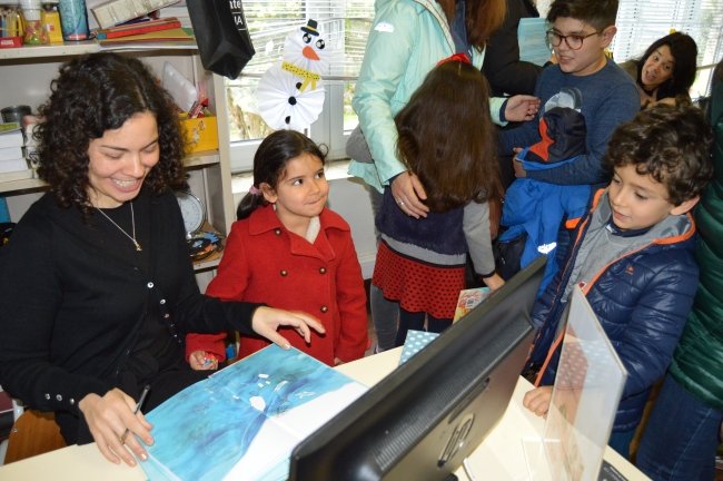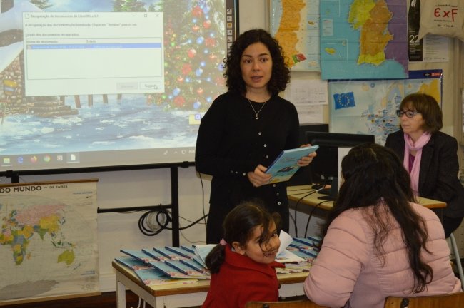 Liliana Geraldes aprendeu as primeiras letras na Escola Básica de Lanhelas e aqui (na sua sala de aulas) fez questão de apresentar o seu livro "Clara e a ilha do plástico", ao invés de o fazer noutro local mais cosmopolita como lhe tinham proposto.