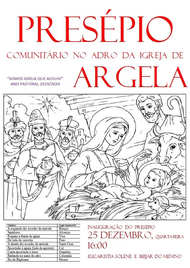 Em ano pastoral inspirado na Senhora do Acolhimento, cada um dos lugares da freguesia é convidado a representar no seu espaço disponível para a realização do presépio um local para acolher O Messias! Apesar da manjedoura ser preparada pelo Lugar de Alvariça, todos os outros Lugares, assim como o Pároco, demonstrarão que estão disponíveis e preparados para O acolher, colocando uma gruta ou uma casa… Será também um compromisso pessoal de cada pessoa se preparar o melhor possível para receber em si O Messias.