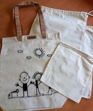 Cada conjunto "Eco Sacolas" é composto por 1 saco principal com aplicação em cortiça e ilustrado com um desenho realizado pelas crianças do Patronato, 2 sacos grandes de atilho e 1 saco médio, também de atilho (existem disponíveis, dois modelos de sacos principais com dois tipos de ilustrações diferentes). Tem o valor de 10,00€ e já pode ser adquirido em vários locais, nomeadamente no Patronato Nossa Senhora da Bonança, nas Piscinas Municipais de Vila Praia de Âncora, nos Postos de Turismo de Vila Praia de Âncora e Caminha; na Docelândia Caminha; na Retrosaria Helana; no Masseira Café Bar; no Hotel Meira, na Loja Toskana; na Telha da Tuxa; na Herança Minhota e no Be Fit.