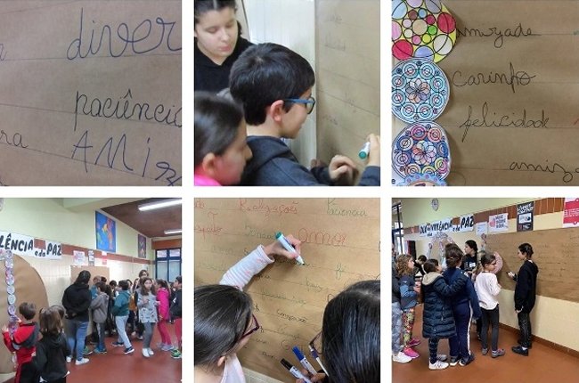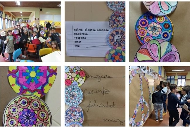 A celebração do dia contemplou também a construção de um mural alusivo à comemoração deste dia e ainda uma réplica do símbolo da paz, no qual todos os alunos colaram mandalas. Com a escrita de frases a favor da paz e contra a violência se preencheu o mural e a cor dada às mandalas deram outra dimensão ao símbolo da paz.