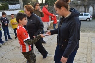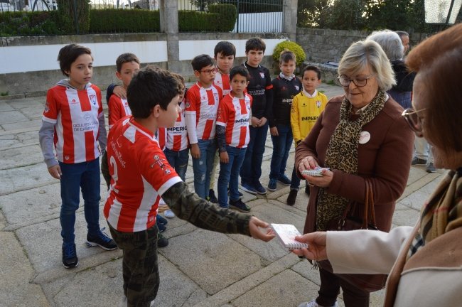 À entrada do ofício religioso, jovens jogadores do Lanhelas F.C. distribuíram blocos de notas aos participantes neste acto, como forma de referenciar a data, o que caiu bem a todas as pessoas.