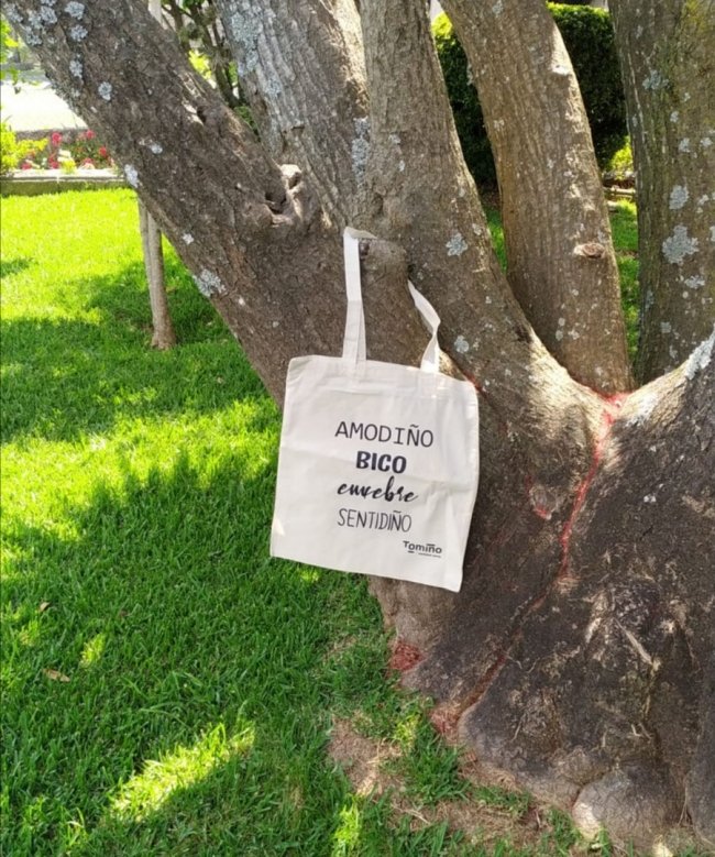 As verbas escollidas; fedello, changarella, afouteza, coliño, aperta, chouchiña, bágoa, ruliña, quérote, sentidiño, bico, riquiña, bolboreta, aloumiño, morriña, agarimo, toxo, xoaniña, amodiño e enxebre están serigrafiadas en varios modelos de "tote bags", bolsas de tea 100% algodón. Hai cinco deseños diferentes que se repartirán, de balde, a partir do luns 1 de xuño nos distintos establecementos comerciais do concello.