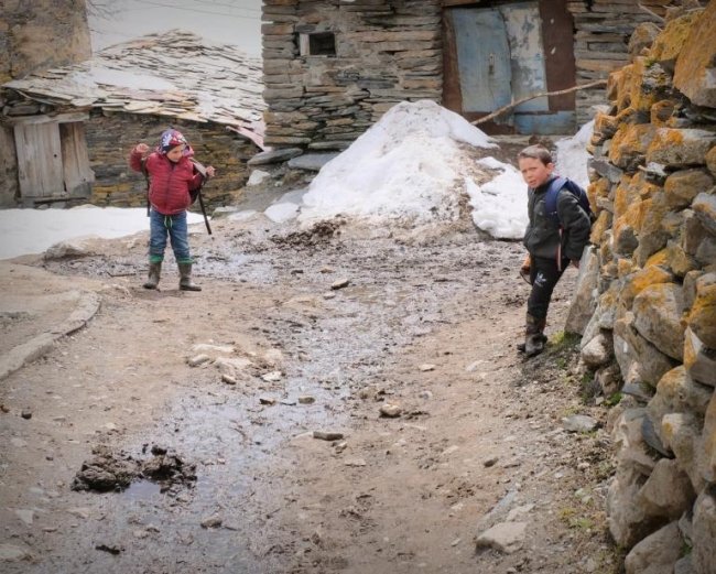 Julgo que pela minha profissão, quando viajo pergunto ou tento descobrir se existe uma escola e caso não exista para onde se têm de deslocar os meninos. Ushguli tem uma pequena escola. Cruzei-me com dois meninos. De mochila às costas; brincavam mas não se mostraram muito sorridentes por uma cara estranha estar a admirá-los. O verde água pintava os olhos de um deles. Pergunto-me: quais serão os seus sonhos?